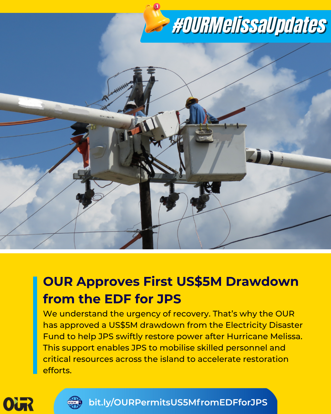 OUR Permits First Drawdown of US$5M from the EDF for JPS